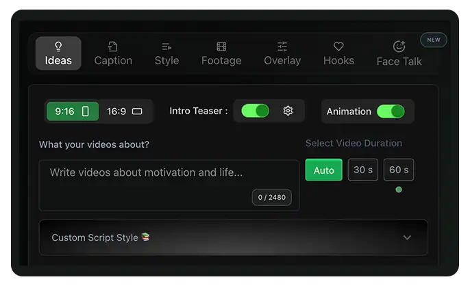 With Shortmake, your initial thoughts are turned into engaging scripts using advanced AI technology. Imagine effortlessly creating scripts that captivate your audience.