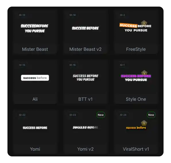 Make every word count. Pick from 23 unique subtitle styles. Capture attention and make your message stick. Stand out with beautifully crafted and visually striking subtitles.